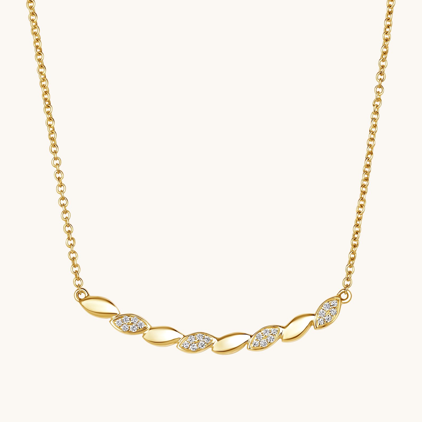 Delicate with just the right amount of detail, the Alternating Diamond Twist Necklace features natural round diamonds set in a graceful sequence of twisted gold. Each diamond-accented link is paired with a high-polished gold counterpart, creating a rhythmic, sculptural effect that catches the light from every angle. Designed to sit comfortably along the collarbone, this necklace is effortless on its own or layered with your everyday favorites.