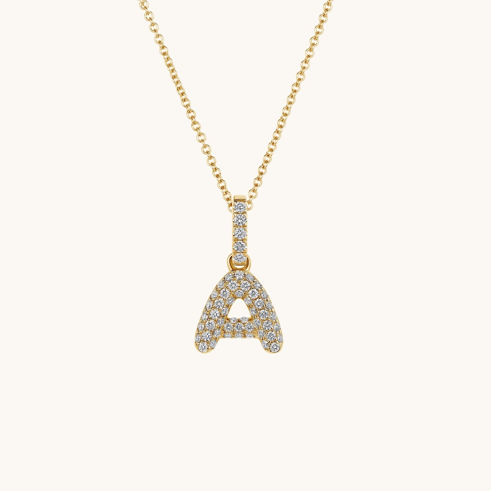 Each diamond initial pendant, crafted in 14K solid gold with pave set diamonds, is the perfect versatile personalized jewelry piece to stack and layer or gift to someone special.