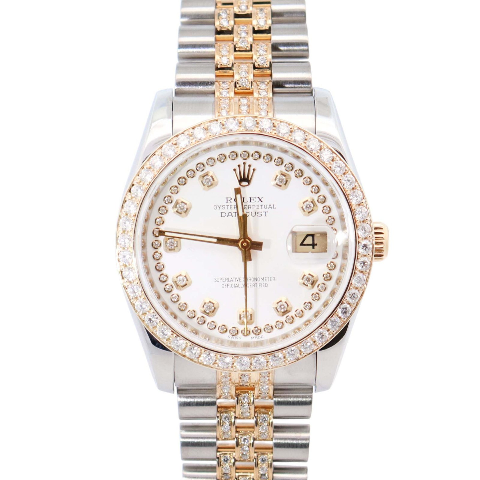 Aftermarket Stainless Steel & Yellow Gold Jubilee With Aftermarket Diamonds