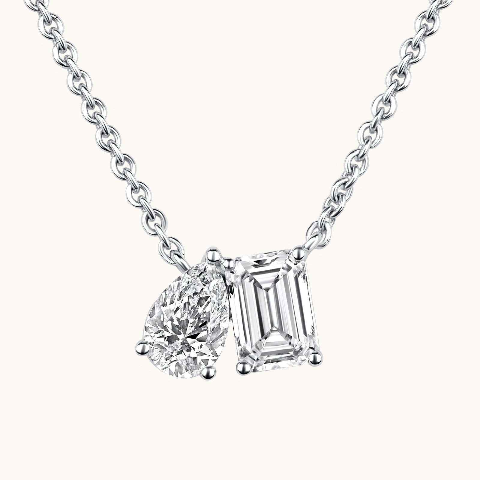 Sleek and sophisticated, our Toi et Moi Diamond Necklace features two contrasting diamond cuts side by side, symbolizing unity and modern elegance.